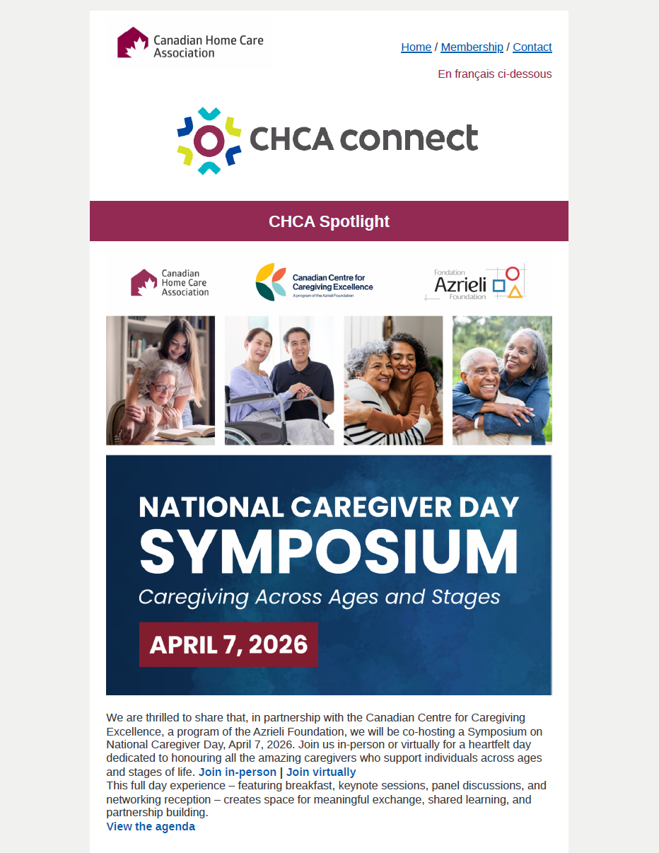 Established in 1990, the Canadian Home Care Association (CHCA) is a national non-profit membership association dedicated to advancing excellence in home and community care.