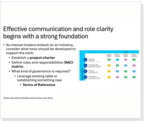 Madeleine Meehan a fait part des acquis des parcours de soins primaires en Ontario, soulignant la collaboration, la responsabilité partagée et la communication directe. Judy Stewart et Karen Bell ont participé à la discussion de l’étude de cas sur la fonction des rôles définis, la conscience culturelle et le soutien des soignant.e.s pour améliorer la coordination, réduire la fragmentation et améliorer les résultats pour les patient.e.s qui reçoivent des soins à domicile et en communauté.